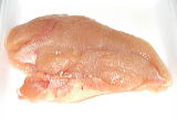 鶏胸肉 ・・・250gくらい 酒(大さじ1)をふり、後に塩(少々)をふって10〜15分おきます。