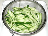 キュウリは千切りにし塩少々を振り、しなっとしたところで水洗いし、水気をふき取ります。