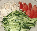 キュウリ ・・・2本 千切りにして、塩少々をふりしなっとしたら、洗って水気をふき取っておきます。