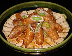 アスパラを芯に巻いていきます。