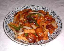 野菜を炒めます。強火でさっと熱を通し 調味料を加えとろみが出たところで2の肉をもどし合わせます。 これで出来あがりです。