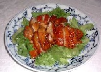 レタス ・・・4、5枚 (ほうれん草でも、サラダ菜でも、適当な青物をあしらってください)