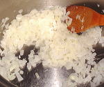 バターを溶かし、 タマネギのみじん切りを炒めます。透き通るくらいが目安です。