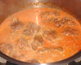 鶏肉を入れ スープ、パプリカも加え10分ほど弱火で煮込みます。