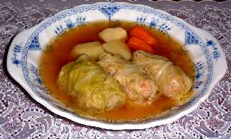 - 鍋に巻いたものが重ならないよう敷き詰める。その上に、付け合せの人参、じゃがいもをのせます。(巻いたものがなべ底で動かない状態がベストです。ゆとりがあると煮込んでいる途中に形が崩れてしまうことがあります。)