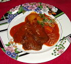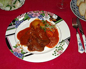 いい香りがしてきましたか?タンシチューは私の最も得意な料理です。これにワインとフランスパンがあれば幸せ♪ このお料理はソースが自慢です。最後のソースまでもパンに付けていただきたいくらい・・・美味しいですよ。試してみてください。 Jin