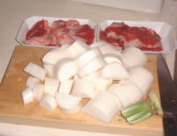 大根 ・・・一本 2cmくらいの厚さの半月切りにします。