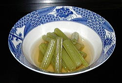 ふき ・・・ 一束 ふきは茹でる鍋に入る長さに切ります。