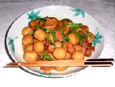 - 1の鍋にサラダ油を足し里芋を炒めます。1の鶏肉を戻し