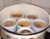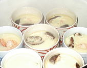 - 蒸し器の湯気が上がったら器ごと入れ、最初強火で1〜2分蒸し、後弱火で17〜18分蒸します。