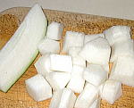 冬瓜 ・・・1/4個 厚めに皮をむき種をそぎ取り、大き目のさいのめに切ります。