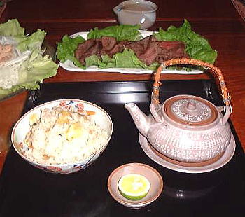 栗ごはん 土瓶蒸し ローストビーフ 10月、山からの贈り物がたくさんです。栗、きのこ類など食卓をにぎわしてくれますね。 栗の時期、一度はいただきたい栗ご飯。具沢山の炊き込みご飯にしてみました。 松茸も、手ごろな値段のカナダ、韓国、中国産などの輸入物でも十分楽しめますね。舞茸や、しめじを入れても美味しいです。山の幸を存分に味わってみてください。 |