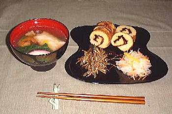 お雑煮 田作り 紅白なます 伊達巻き 12月も押し迫ってくると大掃除、おせち料理にと大忙しですね。 少しでも参考にしていただけたら、と思い作ってみました。 お節はやはり作り置きのお料理です。出来立てよりも日にちが経った方が味が馴染んで美味しくなります。 他にも数の子や昆布巻き、ゆり根の含め煮、ぶりの照り焼き等など、沢山作ってお正月はお料理をお休みにしてしまいましょう。 |
