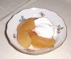- 2のリンゴを盛り付け、3のクリームをかけ出来上がりです。
