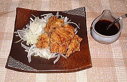 - 180℃に熱した揚げ油でカラッと色よく揚げます。