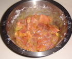 豚肉をボールに入れ 塩、こしょうを振り 片栗粉をまんべんなく和え、更に 卵を入れ混ぜます。