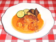 ズッキーニ、米ナスを1の空いたフライパンにて ソテーし、塩、こしょうで味を整えます。最後に鶏と付け合せを盛付け出来上がりです。