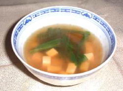 スープを煮立て、 豆腐を加え浮いて来たら火を弱火にします。 調味料を入れ味を整えます。